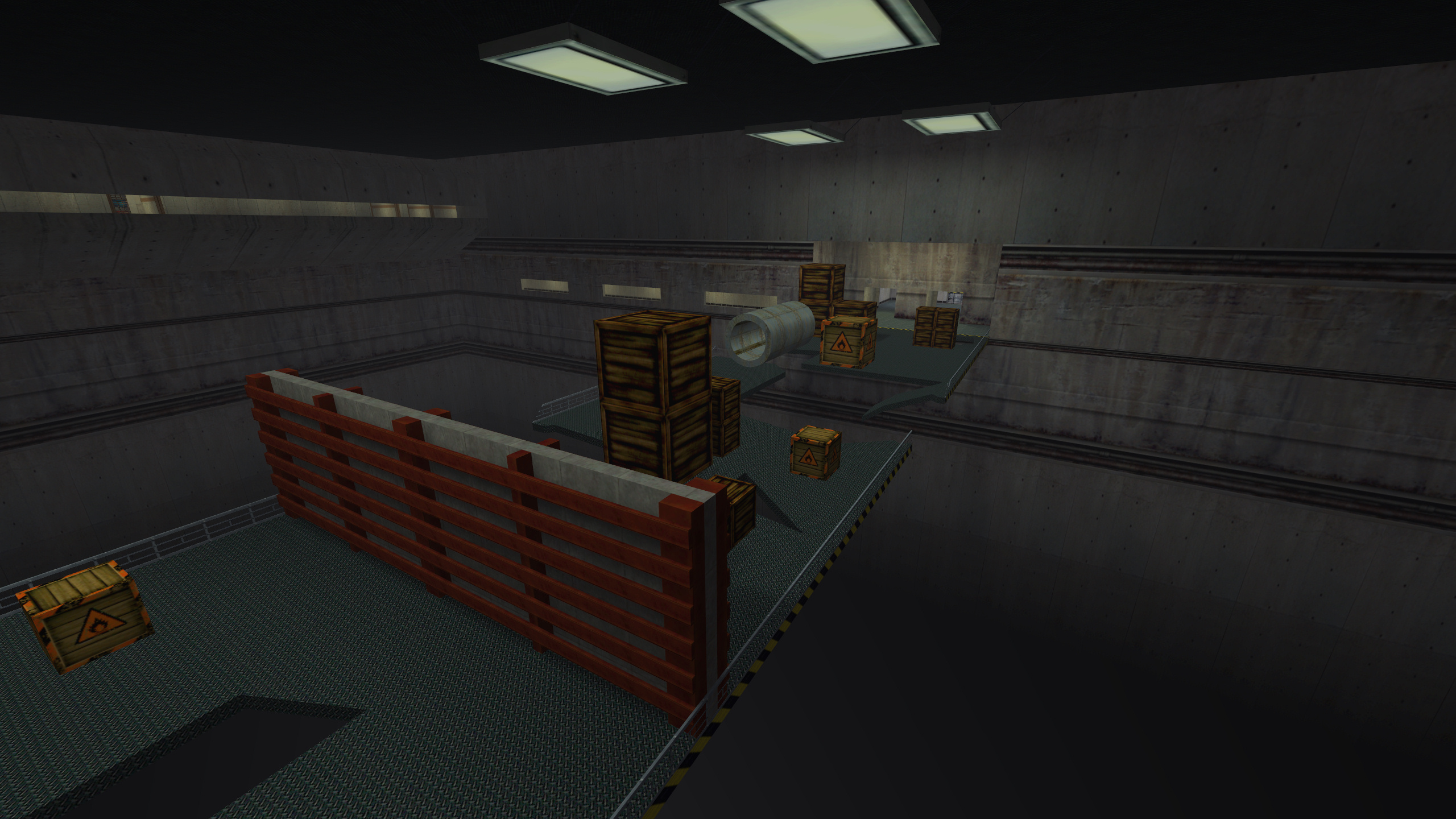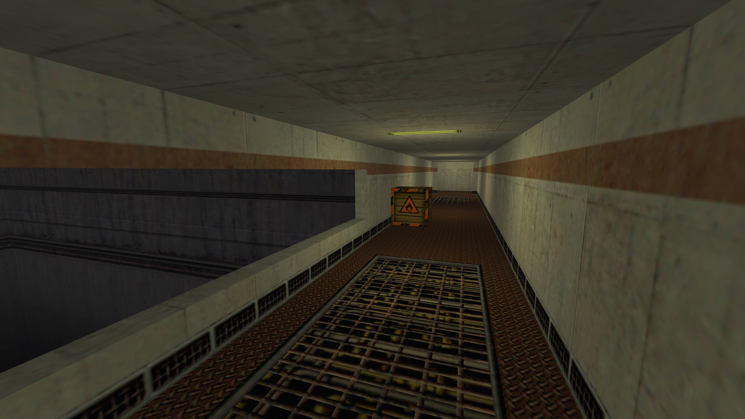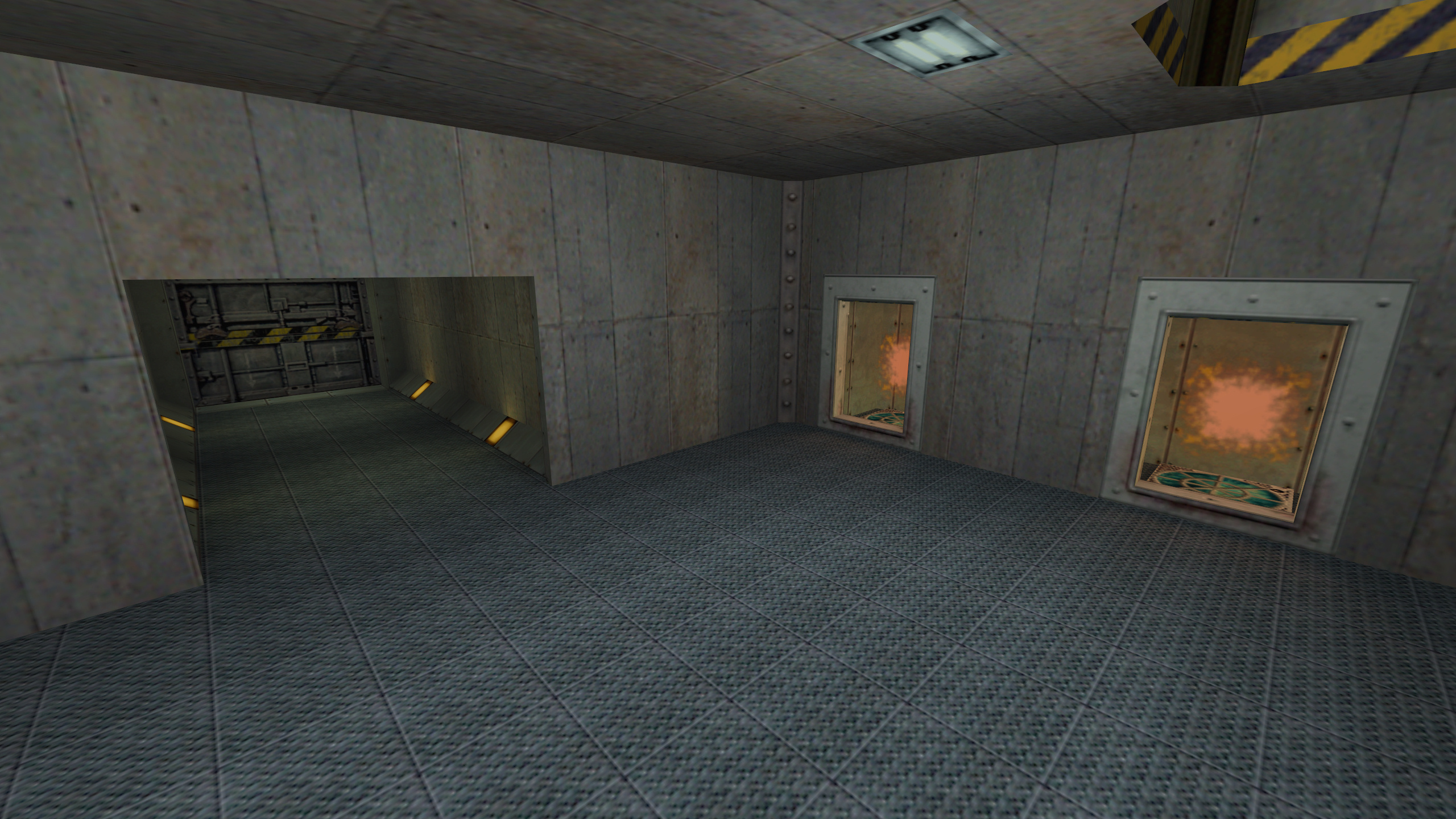 The map uses mostly vanilla and modified Half-Life textures, custom textures I created, and Kingpin textures in the party room. There are special animation .wal files included for the button, and teleporters (this took a bit to make, so enjoy).